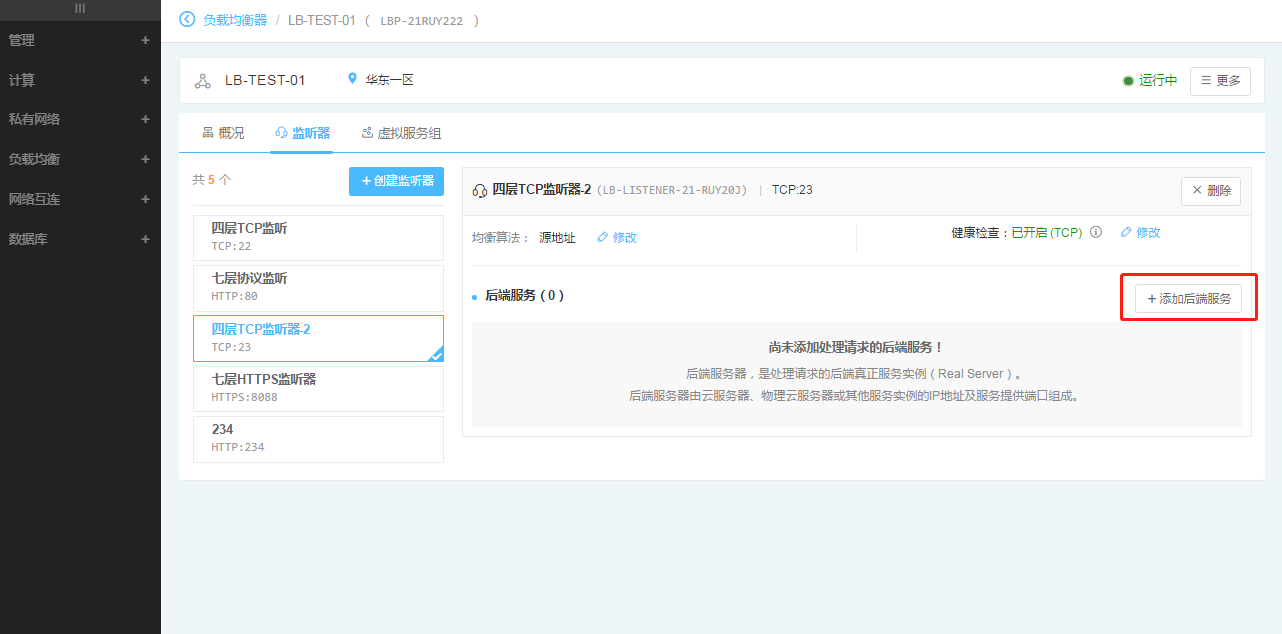 后端云服务器是创建负载均衡实例后绑定在其上处理相应转发请求的云服务器实例。负载均衡监听器通过不同均衡算法,将请求发送到后端云服务器上,保证应用平稳可靠运行。
