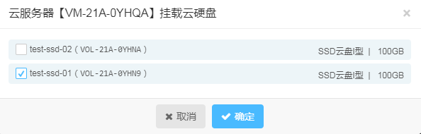 如您还没有云硬盘,请进行创建后再挂载。创建云硬盘,可参阅 创建云硬盘。